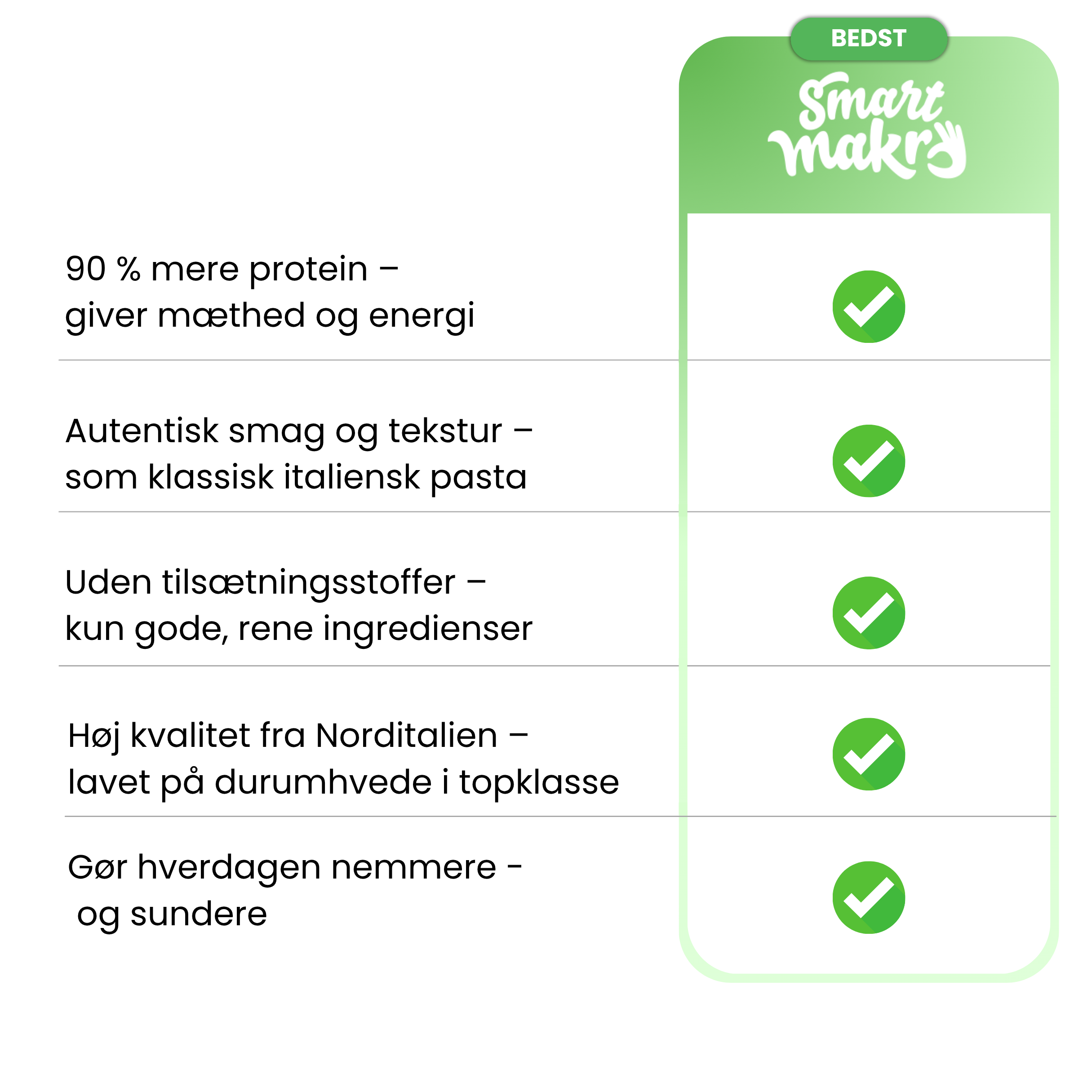 *Indeholder 90% mere protein end sammenlignelige pastaer lavet på durumhvedemel.