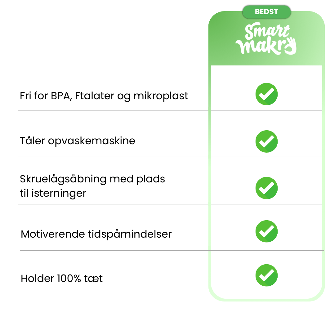 ✅ Opvaskemaskinesikker, 100% tæt & BPA-fri