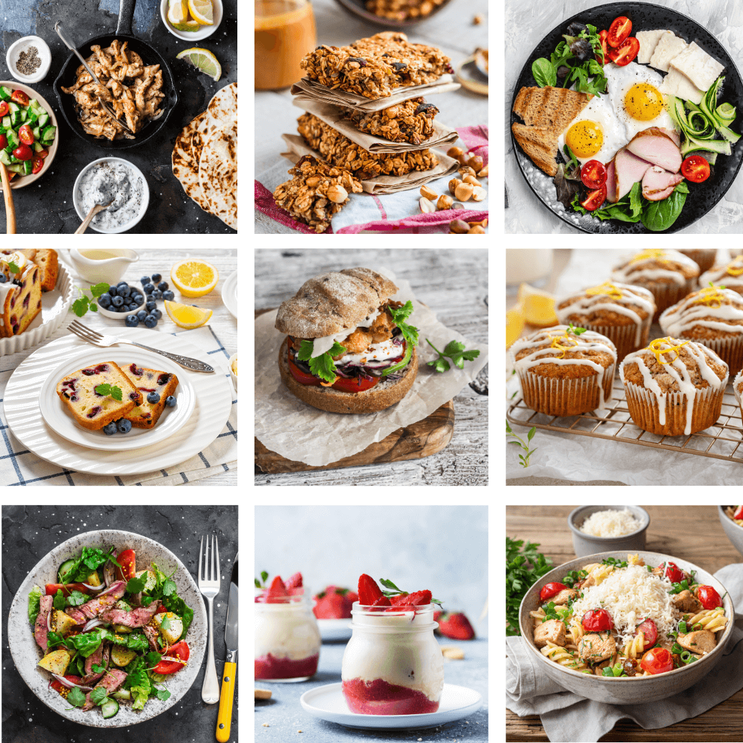 Du vælger frit mellem 30 morgenmåltider, 30 frokostretter, 30 aftensmåltider, 30 snacks samt 30 hurtige desserter, som alle er udviklet til at passe præcis til kroppens behov i overgangsalderen.