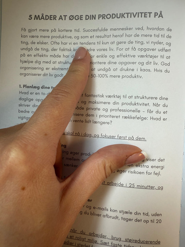 Jeg har nu forsøgt at bruge bogen. Jeg er rimelig til at for lavet struktur for min dag og opgaver. Jeg har ADHD som jeg også skal tænke ind i mine tanker omkring mig selv. Jeg arbejder derfor meget med mig selv om at holde snuden i sporet, så jeg også kan holde styr på min blæksprutte hjerne.