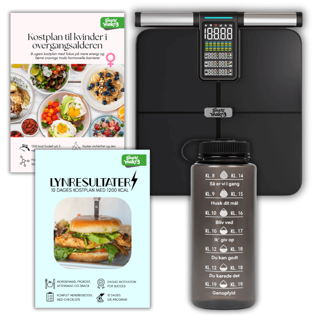 Kend dit udgangspunkt med bodyscanneren, som bl.a. fortæller dig din fedtprocent og kropsalder. Kickstart vægttabet effektivt med Lynresultater og skab holdbare vaner med 6-ugers kostplanen. Oprethold din daglige energi med 1L motivationsvandflasken for optimal hydrering.