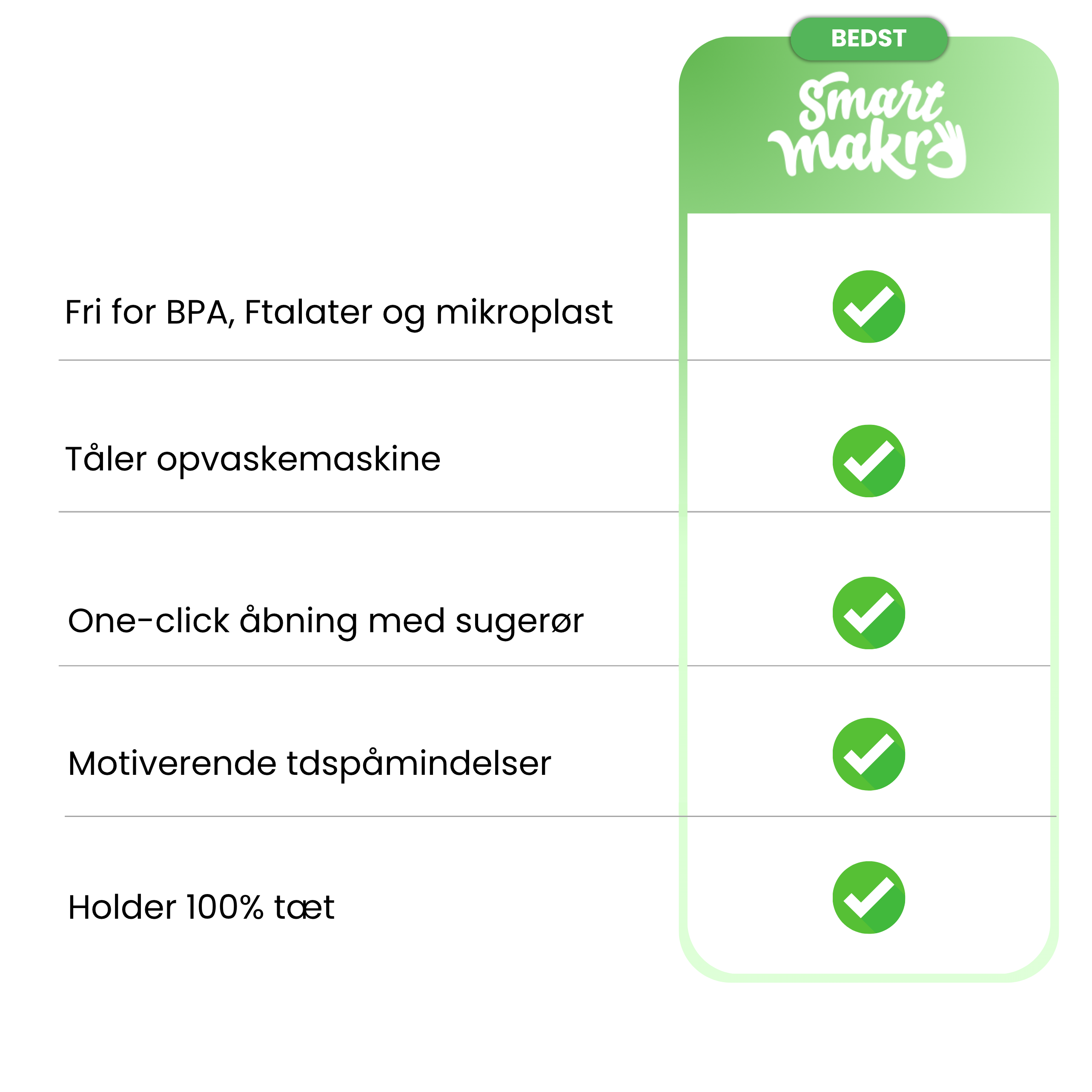 Har du svært ved at drikke nok vand? Vores populære flaske gør det nemt – den bruges dagligt af tusindvis af tilfredse danskere.