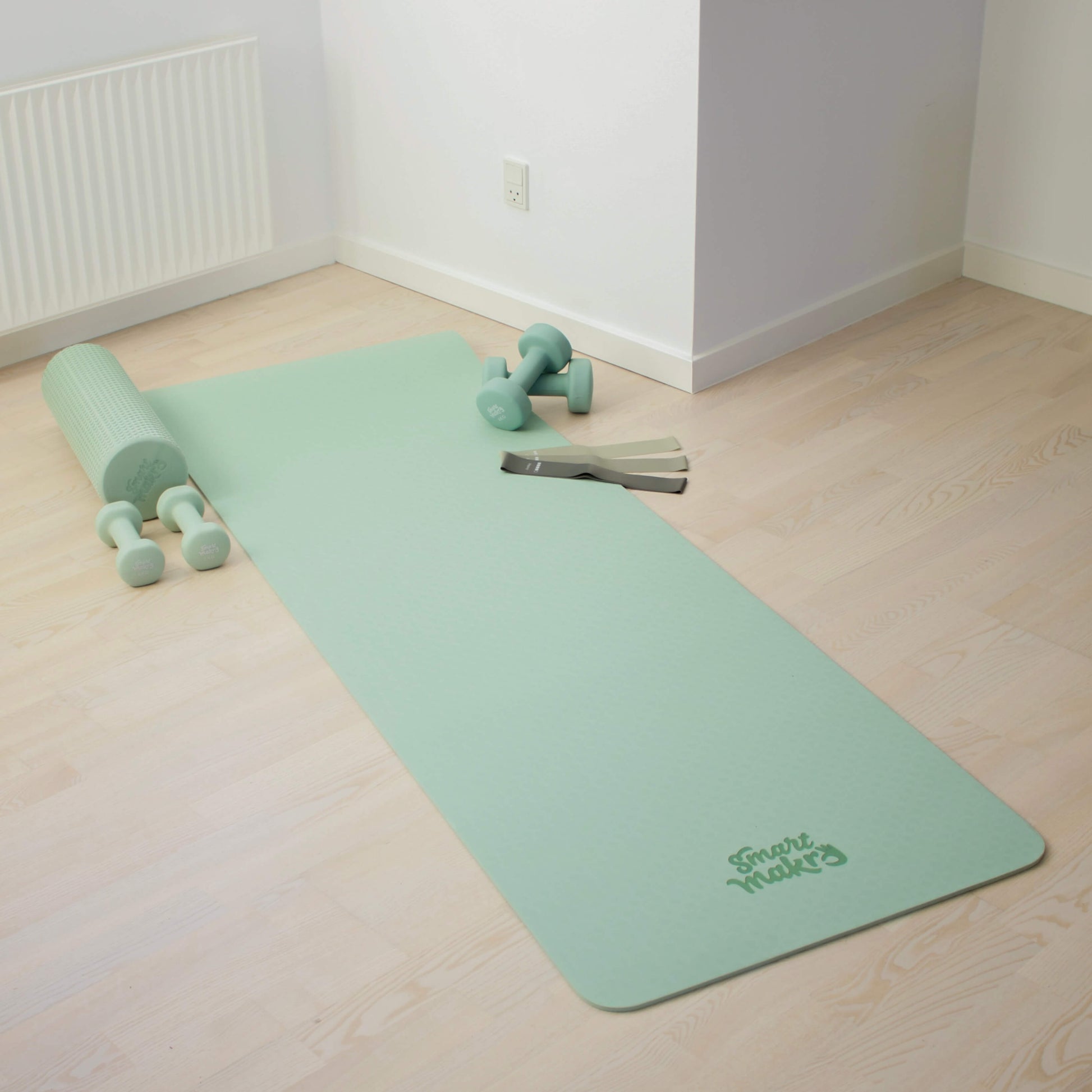 Måtten støtter dig i både rolige stræk, styrkende øvelser og afspænding – og hjælper dig med at skabe et lille rum i hverdagen, hvor du kan trække vejret dybere og bevæge dig uden distraktioner.